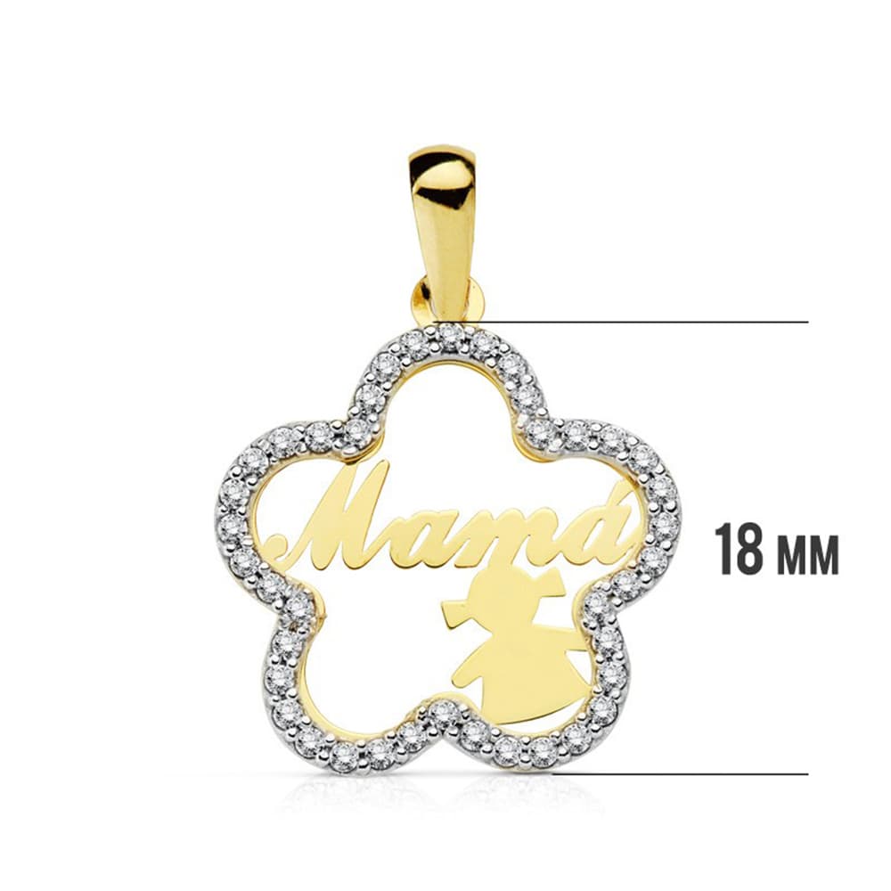 18K COLGANTE MAMA BICOLOR FLOR CON NIÑA 18 MM