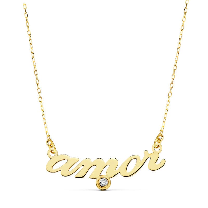 18K COLLAR ORO AMARILLO ” AMOR ” 45CM CIRCONITA