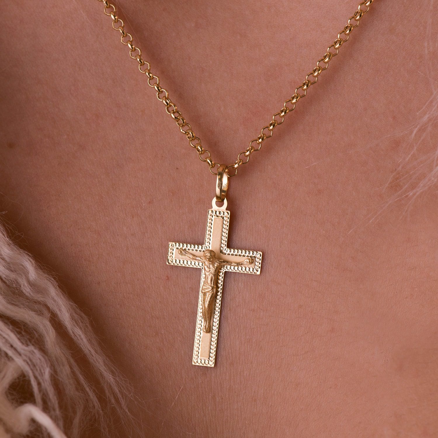 18K CRUZ ORO AMARILLO CON CRISTO TALLADA 35X20 MM