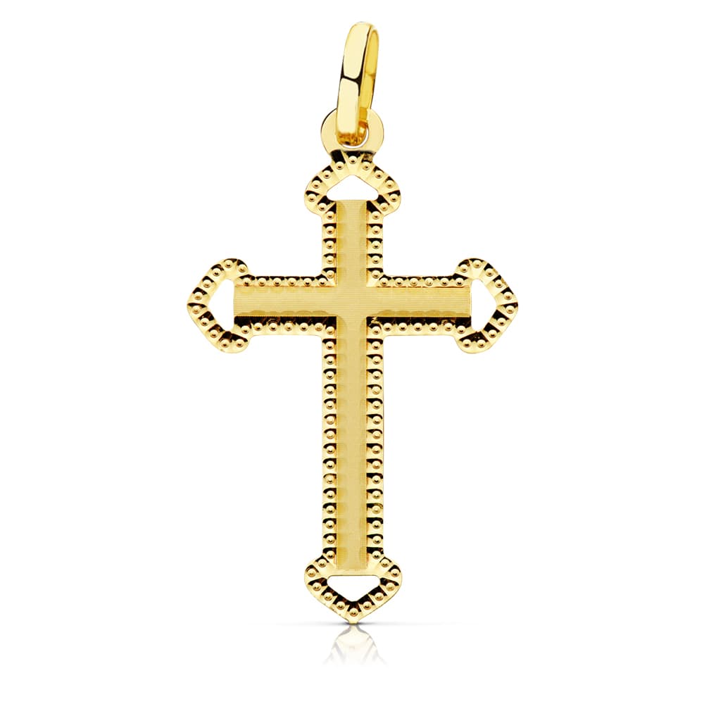 18K CRUZ ORO AMARILLO SIN CRISTO TALLADA 28X17 MM