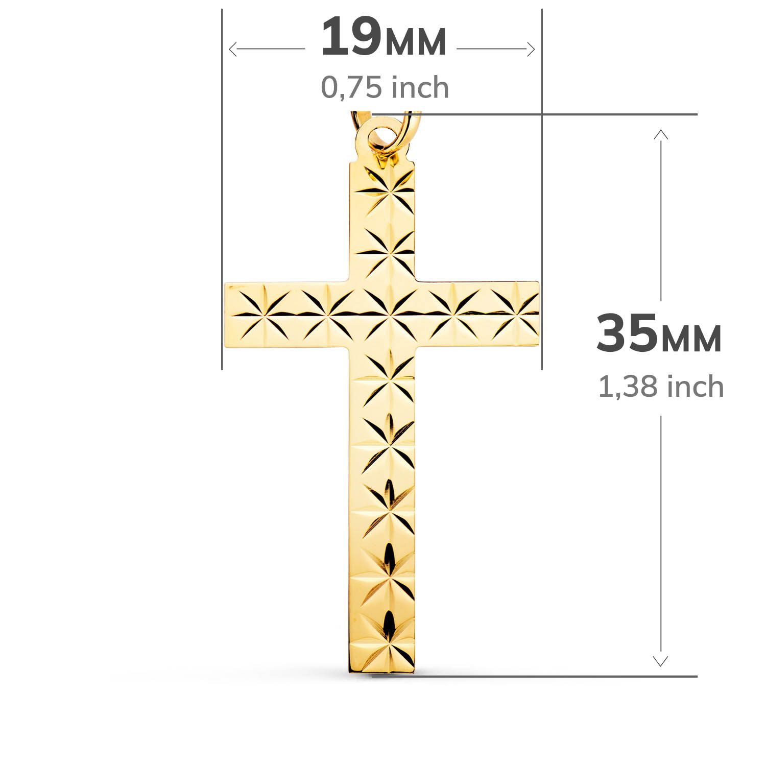 18K CRUZ ORO AMARILLO SIN CRISTO TALLADA 35X19 MM