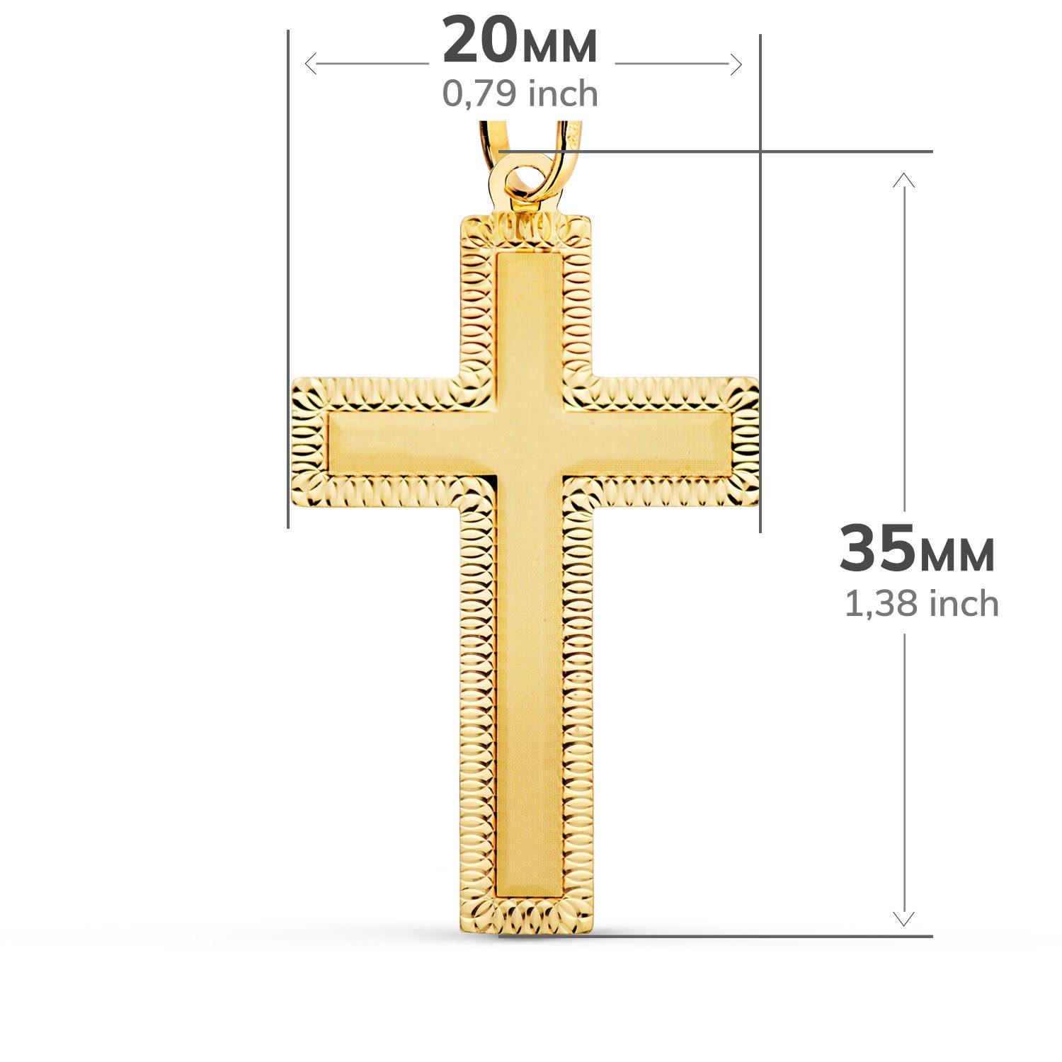 18K CRUZ ORO AMARILLO SIN CRISTO TALLADA 35X20 MM