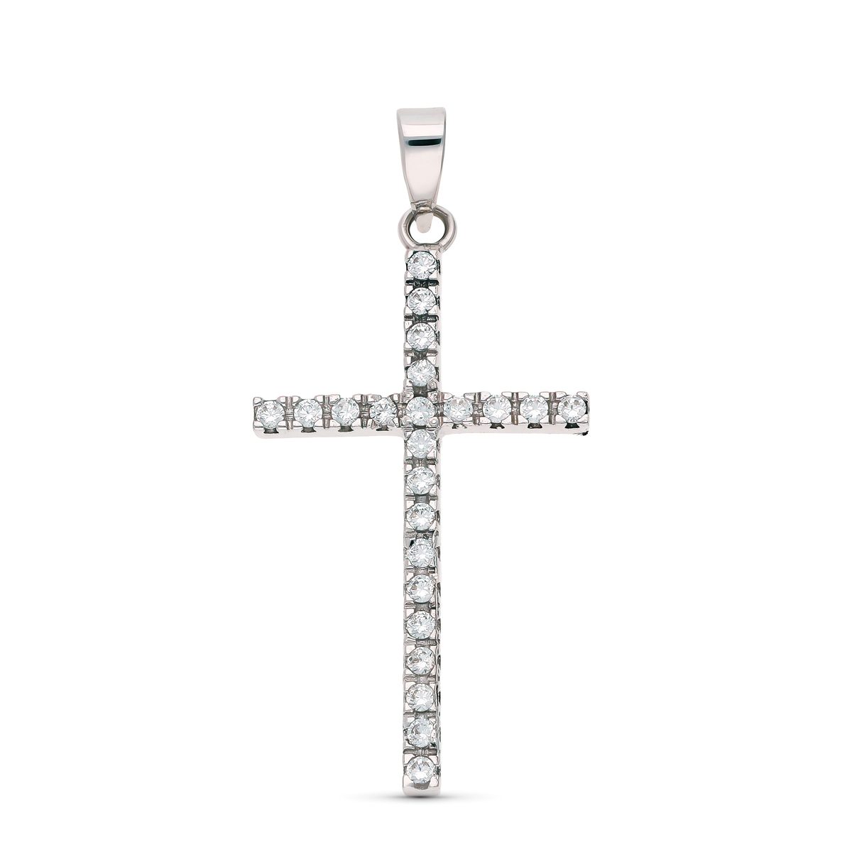 18K CRUZ ORO BLANCO CIRCONITA 31X17 MM