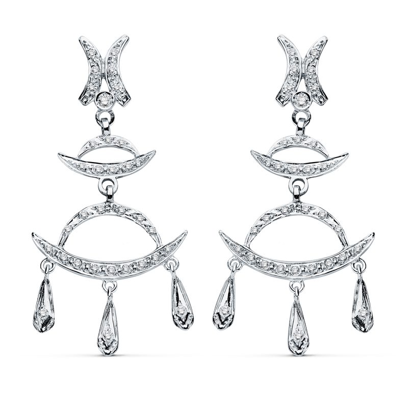 18K PENDIENTES ORO BLANCO CIRCONITA 48X23 MM CIERRE PRESION