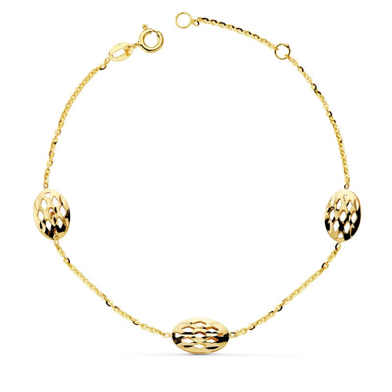 18K PULSERA ORO AMARILLO OVALES CALADOS 19.5CM