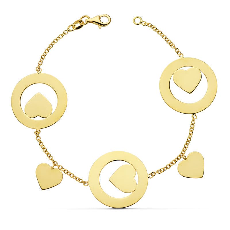 18K PULSERA ORO AMARILLO ROLO CORAZONES 19CM 8.95 GR