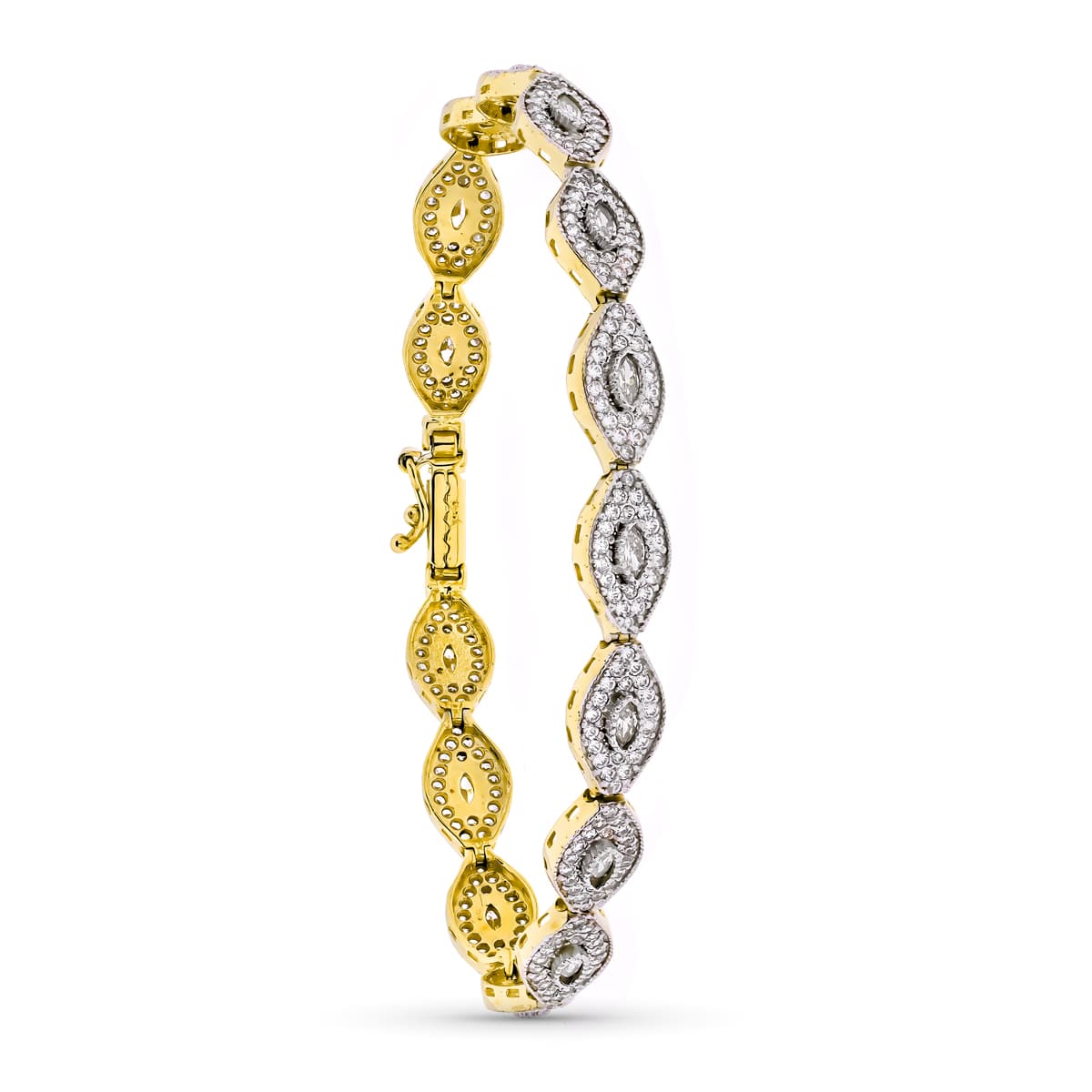 18K PULSERA ORO BICOLOR CIRCONITA Y PIEDRAS 19CM