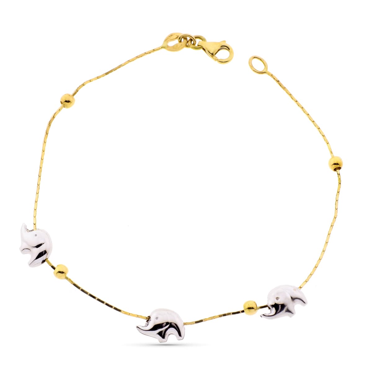 18K PULSERA ORO BICOLOR ELEFANTESY BOLAS LISAS 19CM