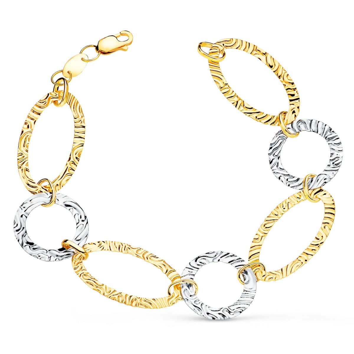 18K PULSERA ORO BICOLOR ESLABONES MARTILLADOS. ANCHO 18 MM LARGO 20CM