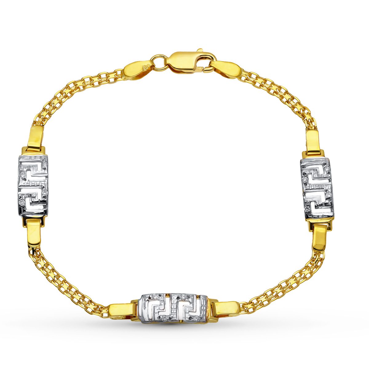 18k PULSERA ORO BICOLOR JUEGO COMUNION 4 CIRCONITA CADENA ESTERILLA